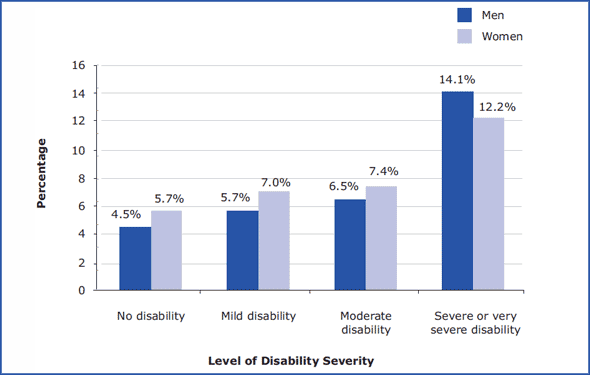 As this chart of unemployment rates shows, there isn’t much difference between unemployment by gender, however the greater the disability, the more likely you are to be unemployed. Disabilities can cause poverty and poverty can cause disabilities. Will the cycle ever end?